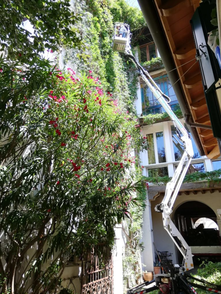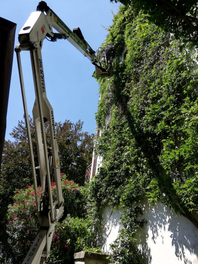 Nelle scorse settimane Cristiano Zancan ha dispiegato la sua gru all’interno del cortile di un palazzo di Vicenza, per intervenire su un esemplare maestoso di glicine, in assoluta sicurezza. La potatura è stata fatta per domare la rigogliosa vegetazione, contenere i rami in crescita che andrebbero a ricoprire le finestre, dare una forma più armonica alla struttura e favorire una rigogliosa fioritura nella prossima stagione.